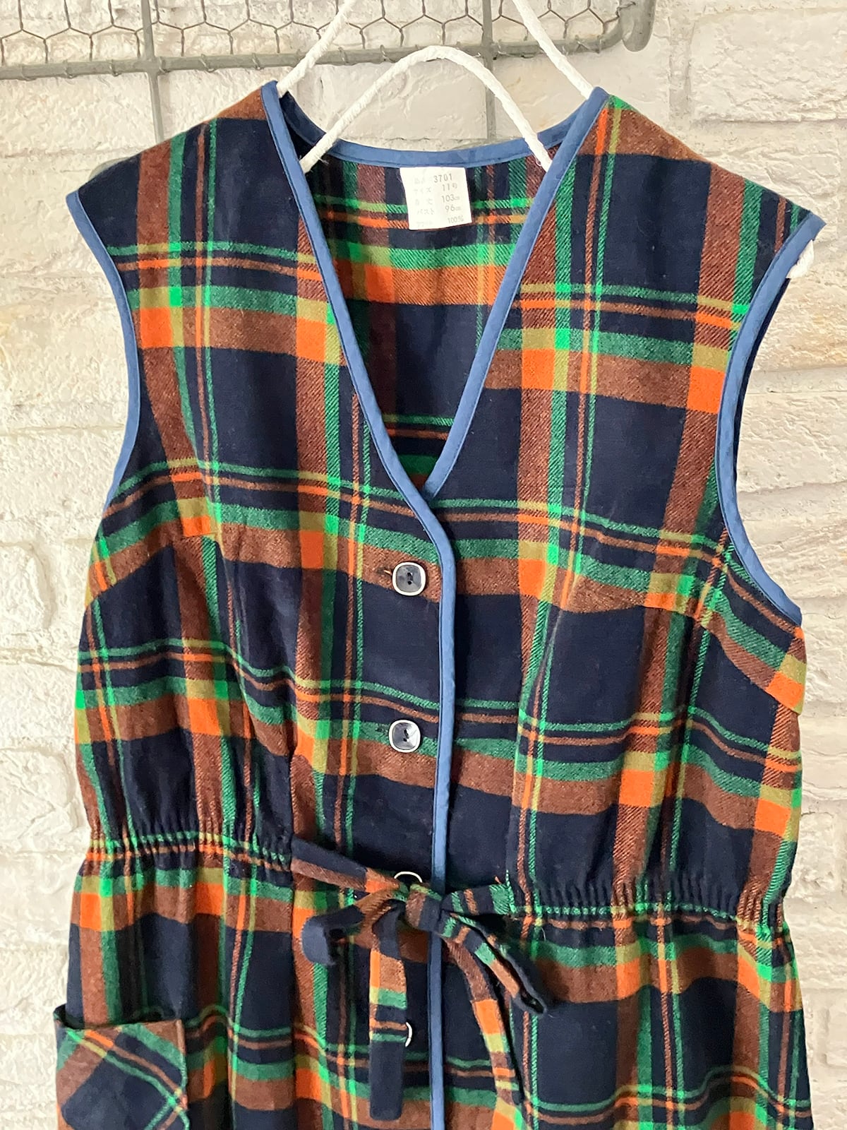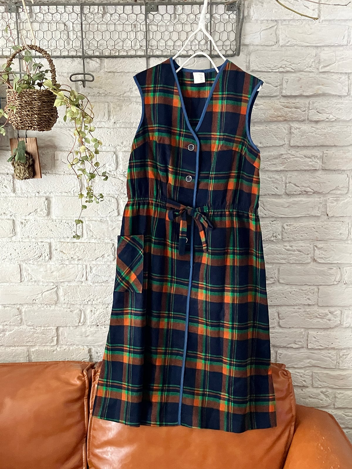 retro◆Checkered Overdress◆11号◆昭和レトロ古着ワンピース