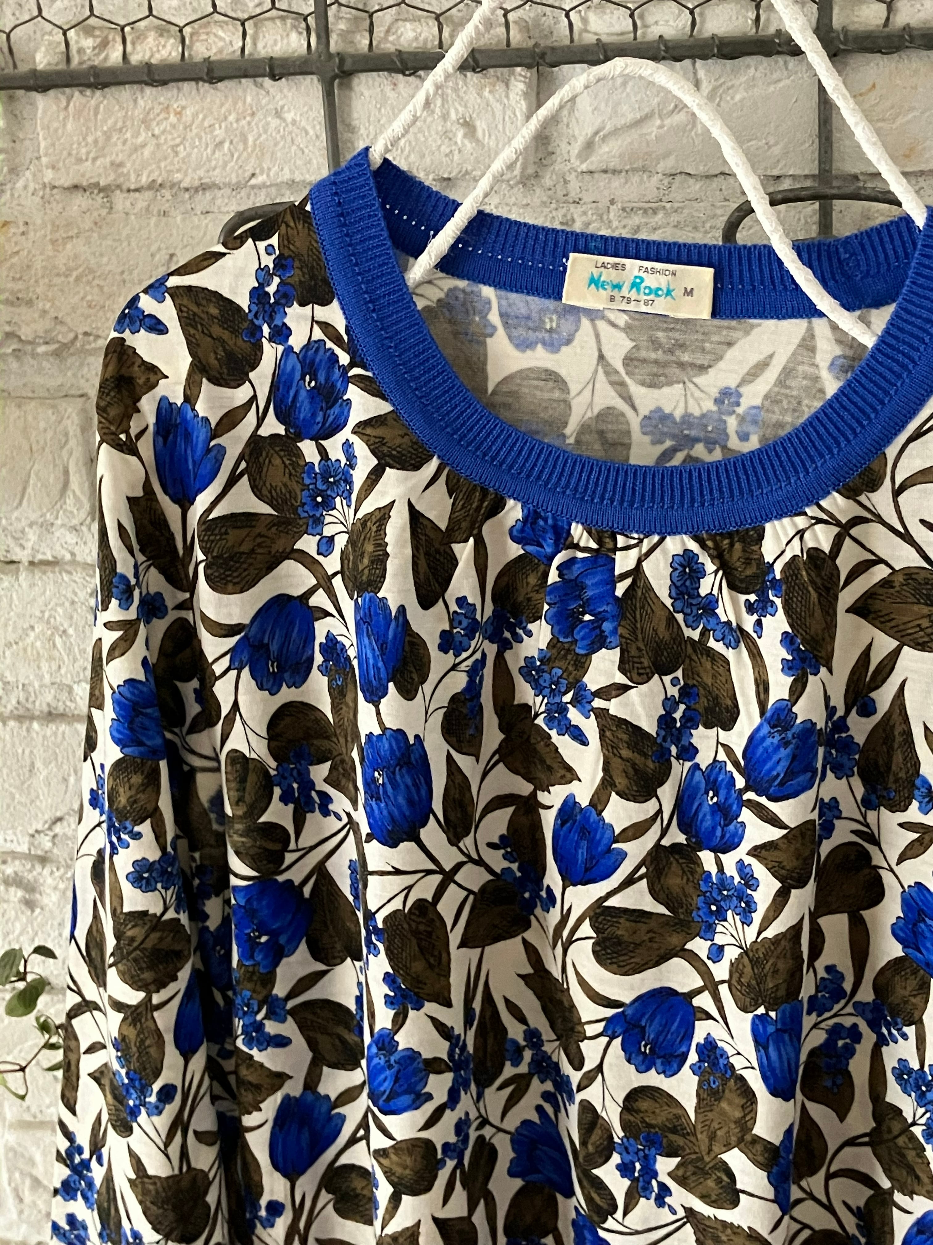 retro◆Botanical print tops◆New Rook M◆昭和レトロ古着