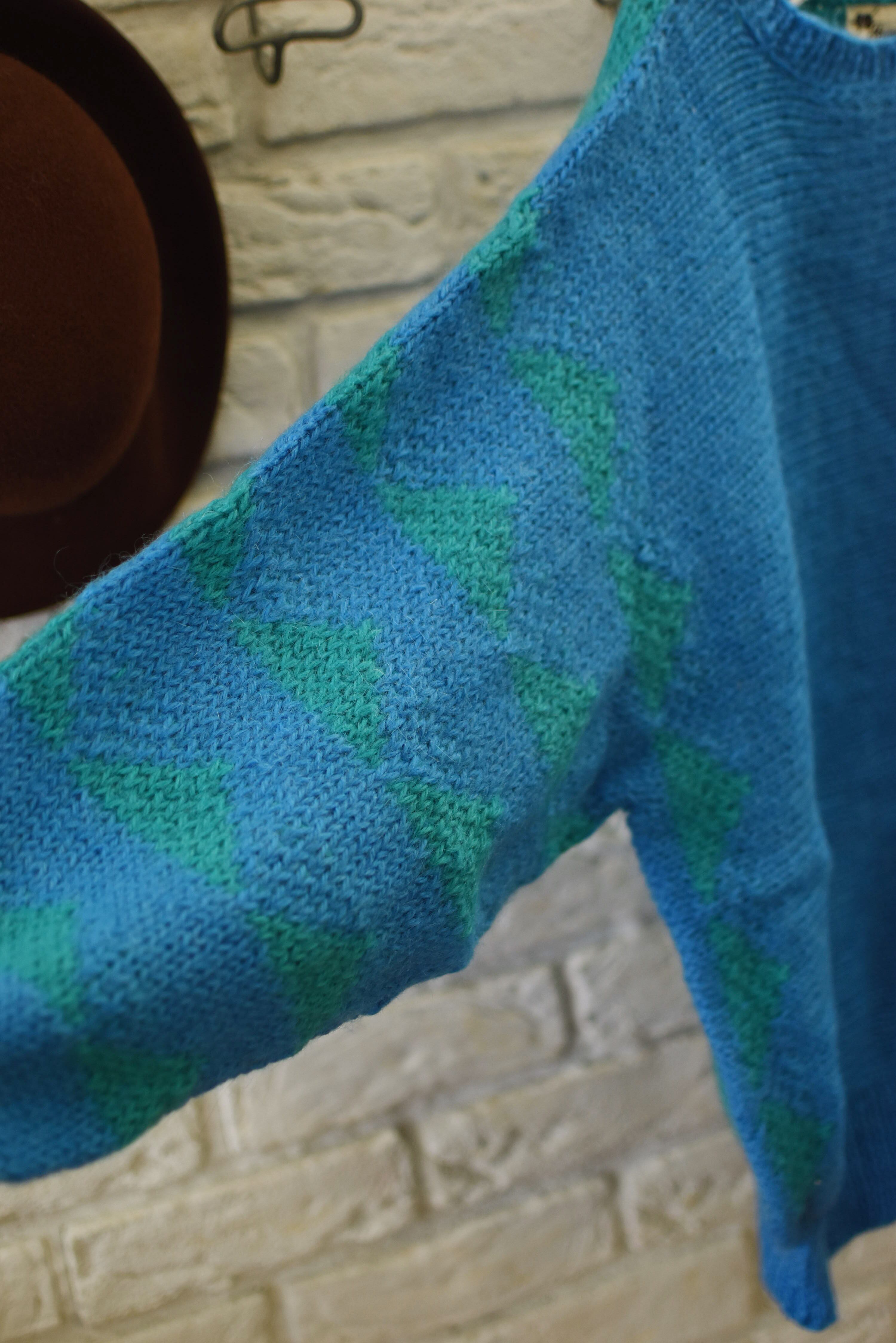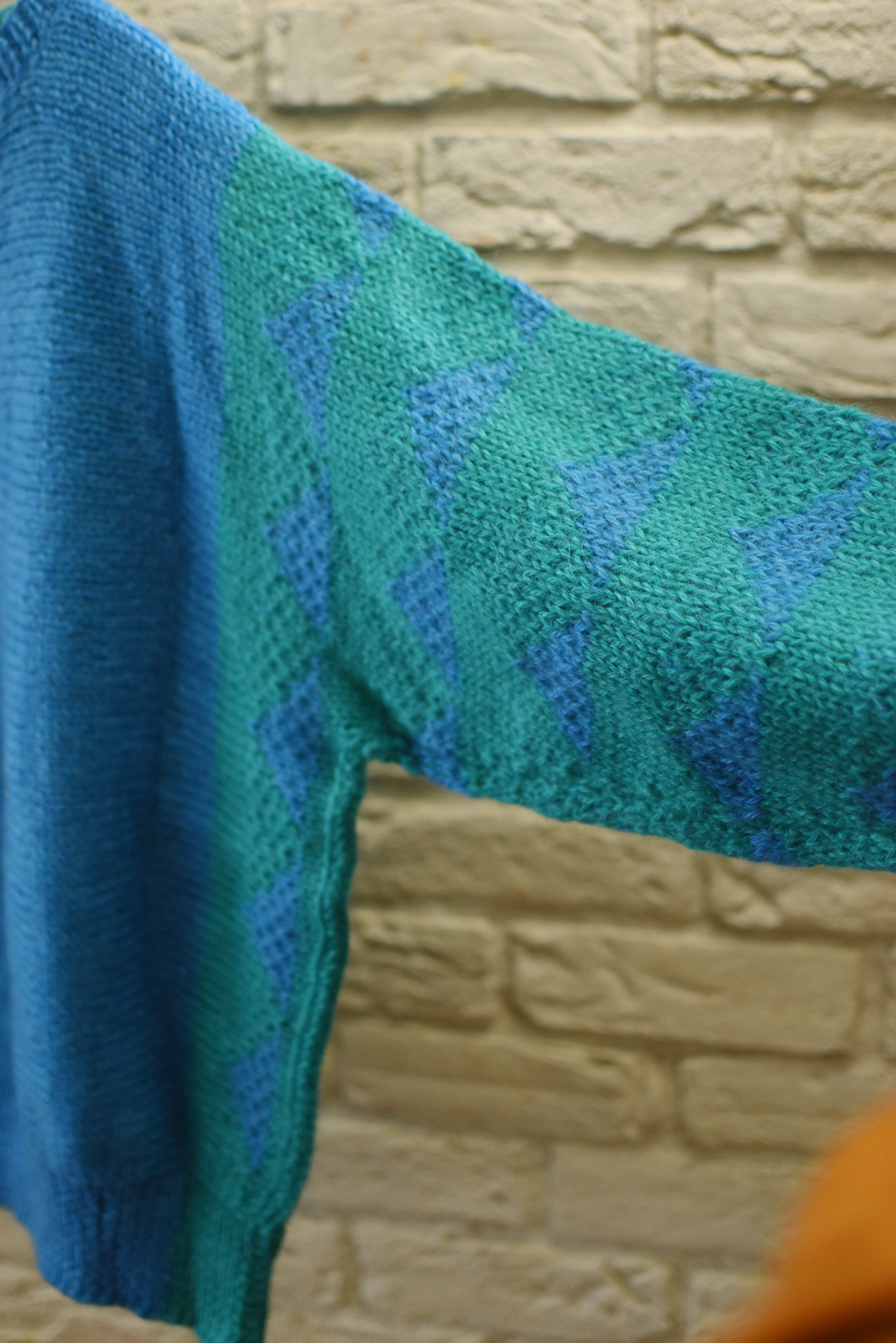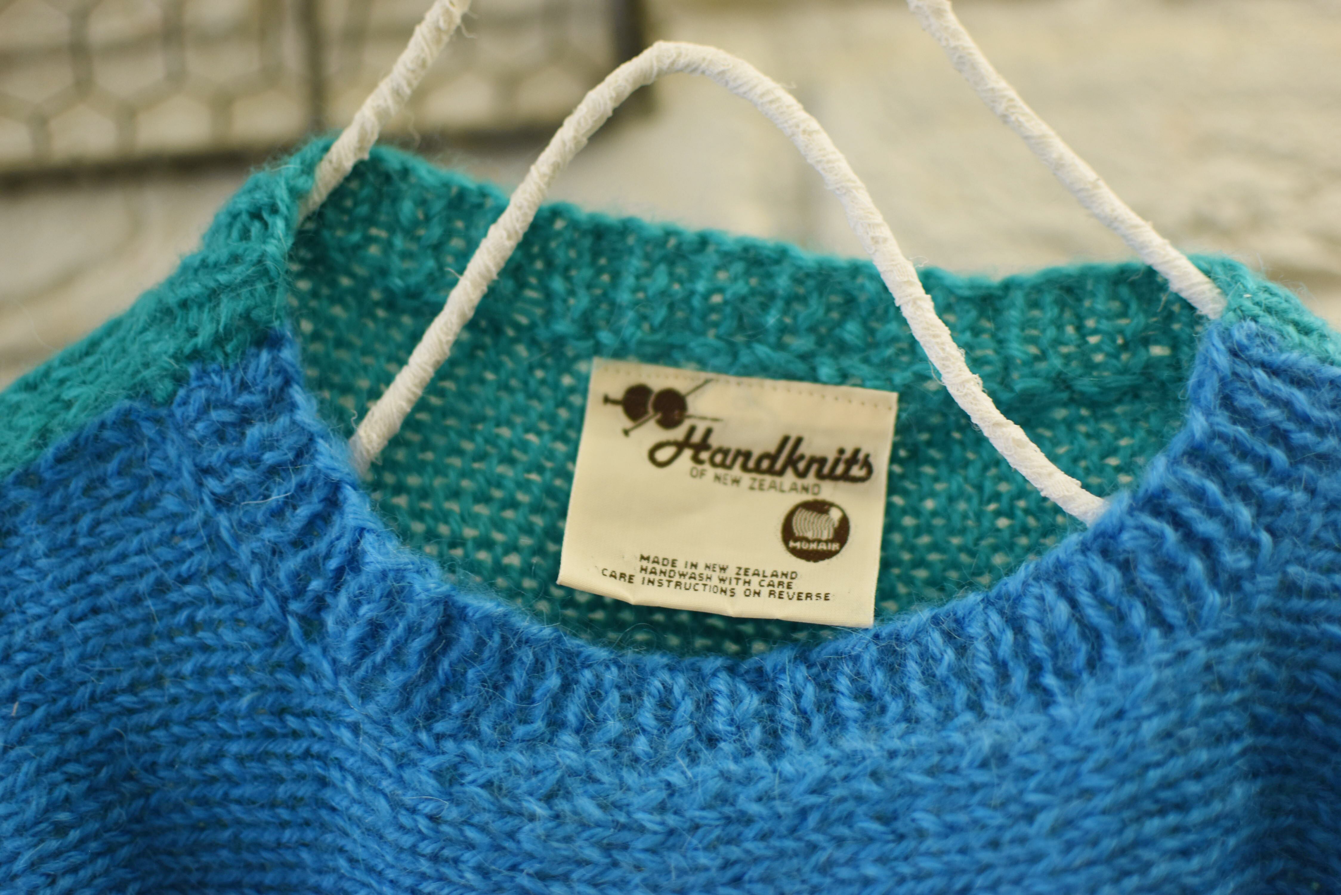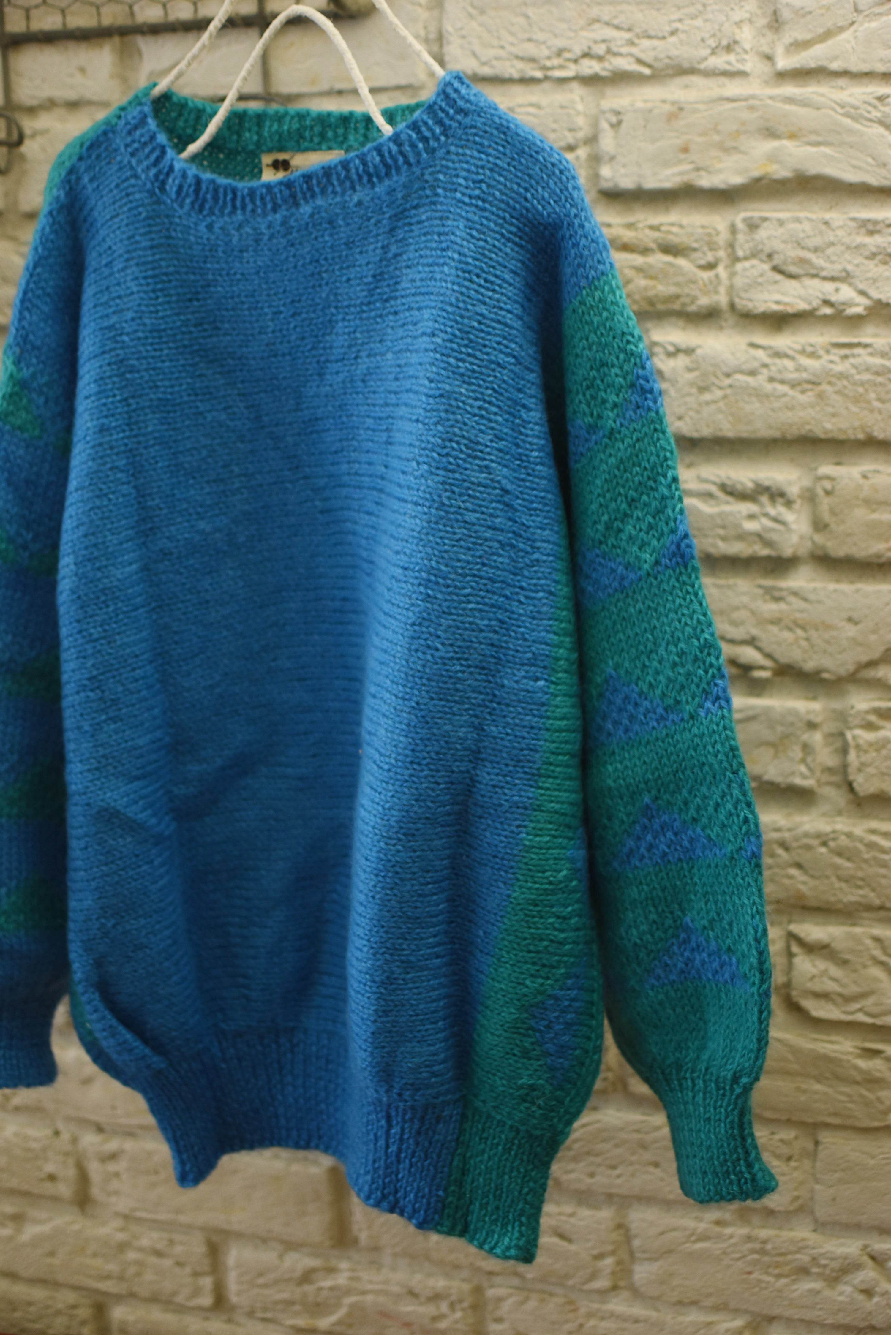 made in new zealand◆"Hand knits"zigzag pattern セーター◆昭和レトロ古着