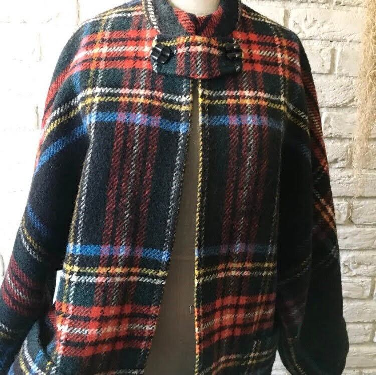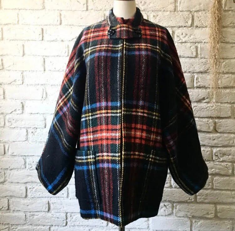 昭和レトロ古着◆チェック柄 レトロコート レトロアウター
