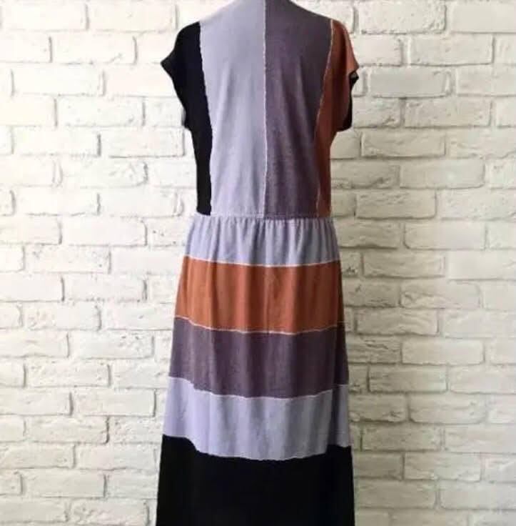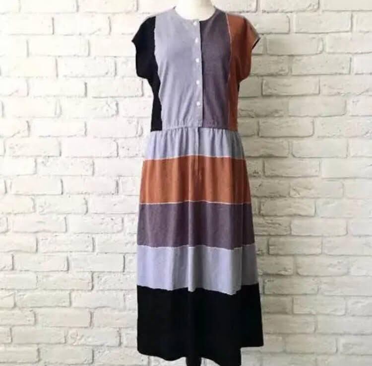 昭和レトロ古着◆3色切り替え モダン レトロワンピース M-L程度